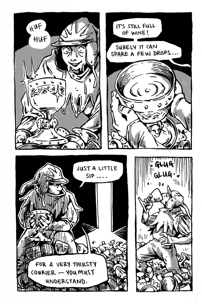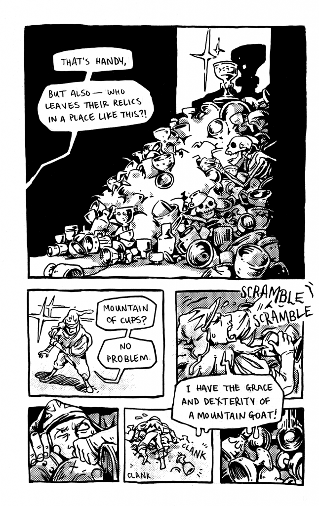 Cup Quest 2025 Initially started as part of 24hr Comic Day, I managed to create the story and pencils within 8 hours but inked it when I had free time over the next month. Made into a little zine for Thought Bubble.