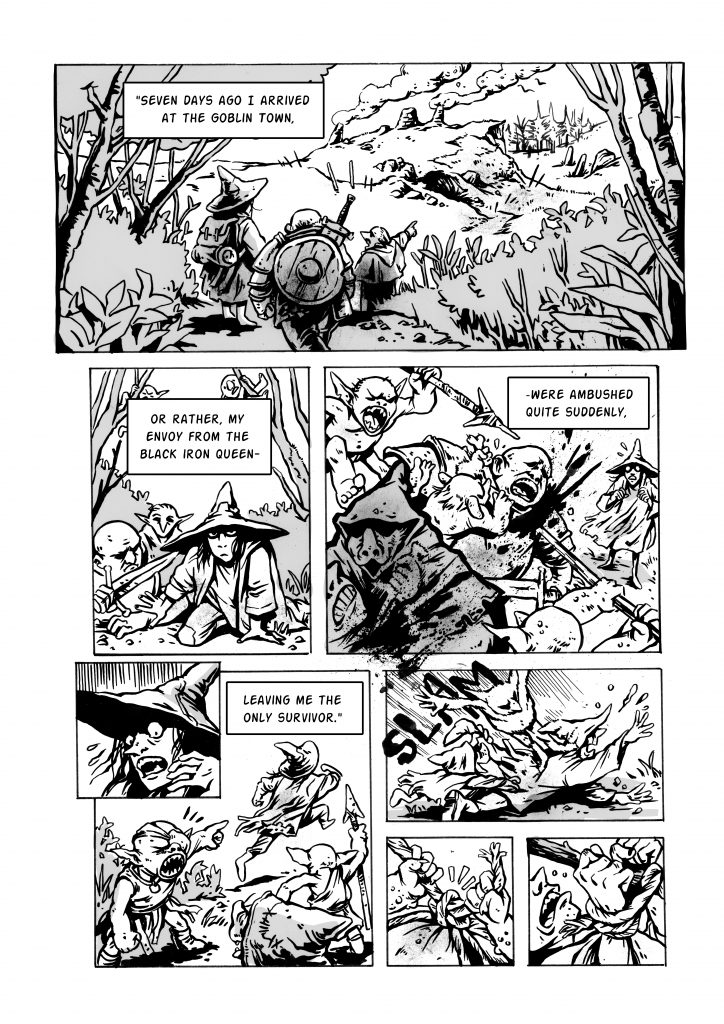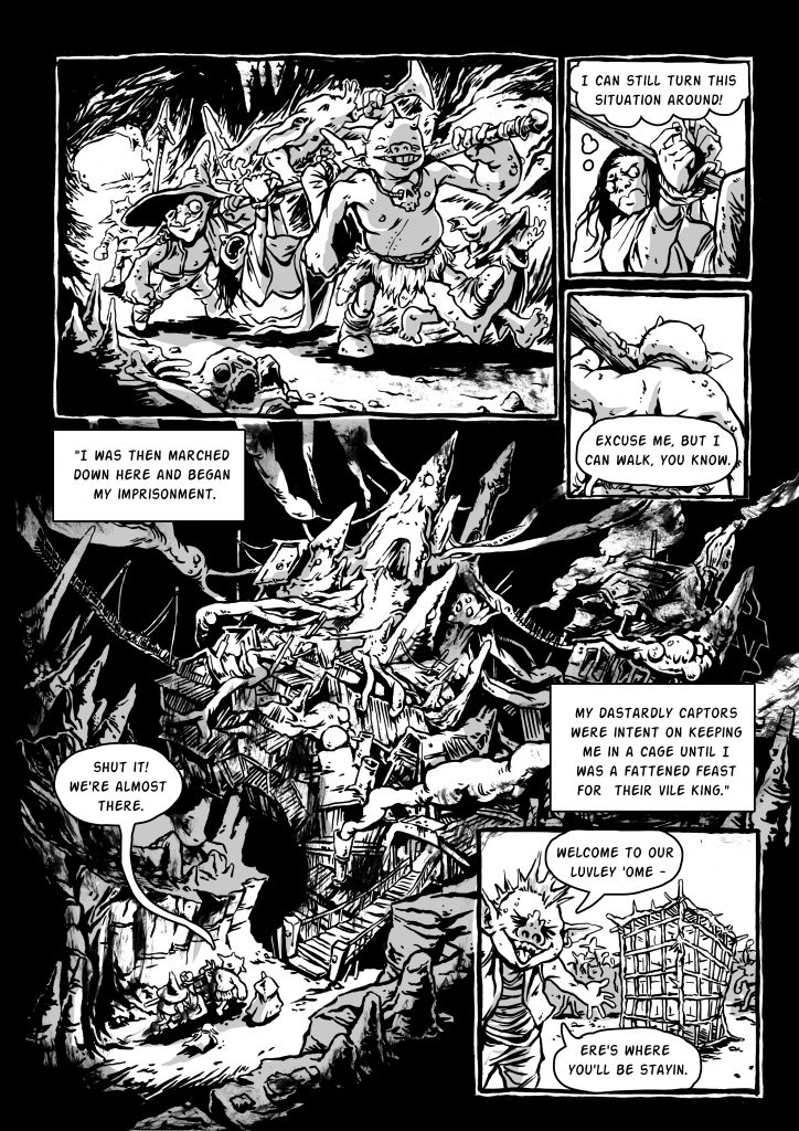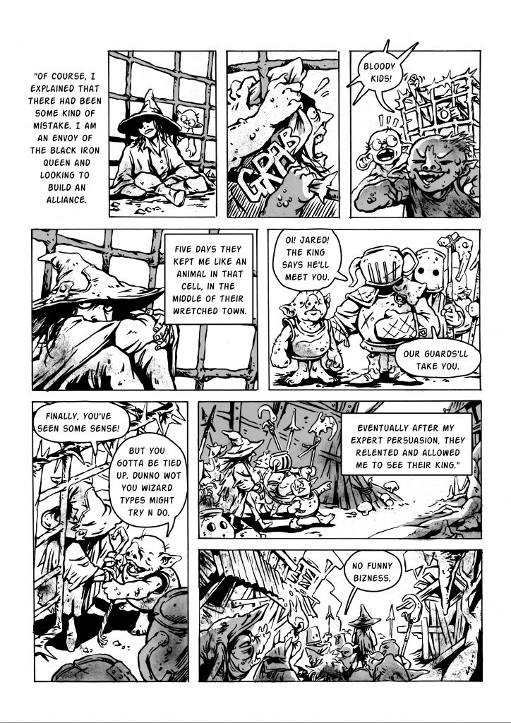 Down, Down to Goblin Town 2025 I organised and ran a small anthology project involving 13 other artists on the theme of goblins. I made a 20 page comic which opened and closed the book to give it an overall sense of narrative.